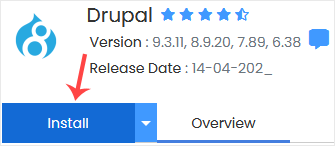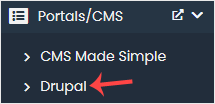 4.  No lado esquerdo, localize a categoria Portal/CMS . Clique nele e depois no link Drupal que aparece. 5. Clique em Instalar . 6. Preencha os campos necessários nos campos de configuração de software :