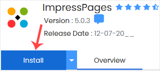 4. No lado esquerdo, localize a categoria Portal/CMS . Clique nele e depois no link ImpressPages que aparece. 5. Clique em Instalar . 6. Preencha os campos necessários nos campos de configuração de software :
