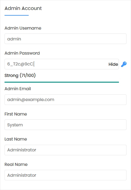 • Admin Username: Your new GRAV username (for security reasons, do not use the administrator or the admin username).