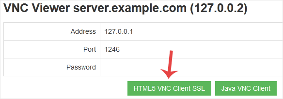 4. A nova página VNC será aberta. Clique em HTML5 VNC Client SSL (Recomendado) ou Java VNC Client.